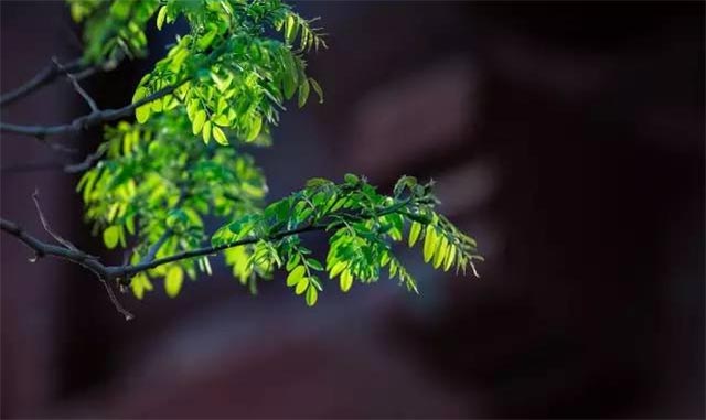 嫩绿的树芽刚刚萌生,鲜活的嫩绿跟斑驳的墙面,虚虚实实,别有一种味道在里面。