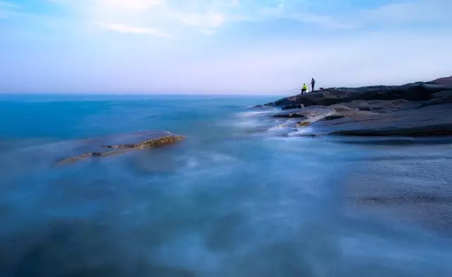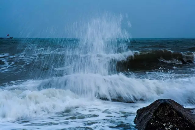 摄影可以把汹涌澎湃的大海定格,也可以借助减光镜用慢门把大海拍的柔顺乖巧,这也是艺术摄影的精妙之处。这次的大海之旅巧遇大风,呼啸的海风吹起滔天的海浪,海浪拍打着礁石,浪花四溅,相机怕水,尤其是海水,海水一旦进入到相机内部就会腐蚀相机的电子软件和金属部件,所以相机不敢太靠近海浪舔舐的地方,尽可能让相机远离海浪,我经历过海浪把相机卷进大海过程,所以心有余悸不敢太靠近。