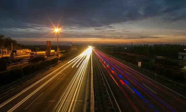 在天桥上拍摄的《高速路车轨》 ,天气确实不错吧,晚霞与车轨一起收进了相机里。