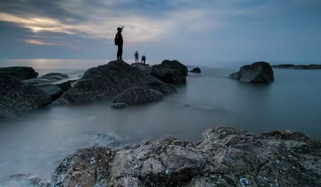 在海边偶遇的一对大学生,他们说考研的压力很大,周末到海边来释放压力,我发现两个青年人坐在礁石上望着无垠的大海久久的一动不动,于是我喊了他们一声,说给他们拍张照片,让其中的一位站起来保持30秒不动。后来单独给这位青年拍了一张,他看后觉得特满意,比较符合他此时的心情,彼此加了微信号,小伙子请求我回京以后把照片传给他,他说在考研的这段时期内如果累了就会看看这照片,照片的内容就是鼓舞他前进的动力。
