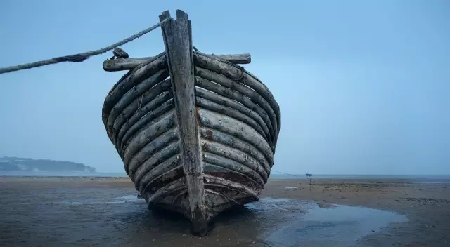 觉华岛海边古老的木船