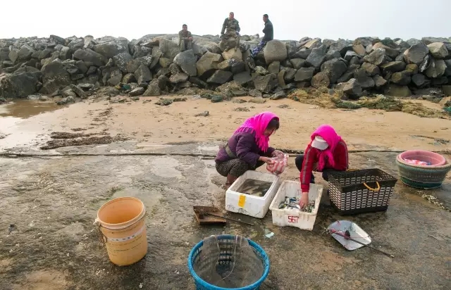 觉华岛雷家屯渔村前拍摄海的儿女