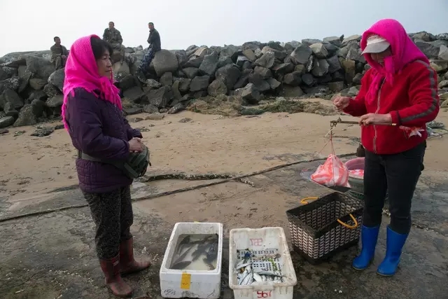 渔村的早上还是比较繁忙的,打鱼的船靠近码头将打的海鲜卸载下来,供城里来的游客享用或者购买。卖鱼的大姐是我们住的渔家乐雷大哥的嫂子,让我买几斤品尝,我买了三斤新鲜的小鱼做为早餐的菜肴,提供我们住处的雷大哥媳妇给油炸的,味道好极了。