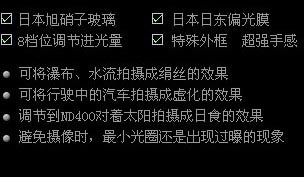 产品特点 8档位调节进光量 特殊外框 较好手感